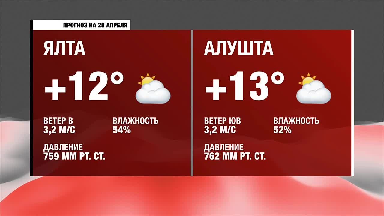 В Симферополе +14 и облачно с прояснениямиВ Севастополе +13 и облачно с прояснениямиВ Евпатории +13 и облачно с прояснениямиВ Черноморском +13 и облачно с прояснениямиВ Джанкое +16 и пасмурноВ Ялте +12 и ясноВ...