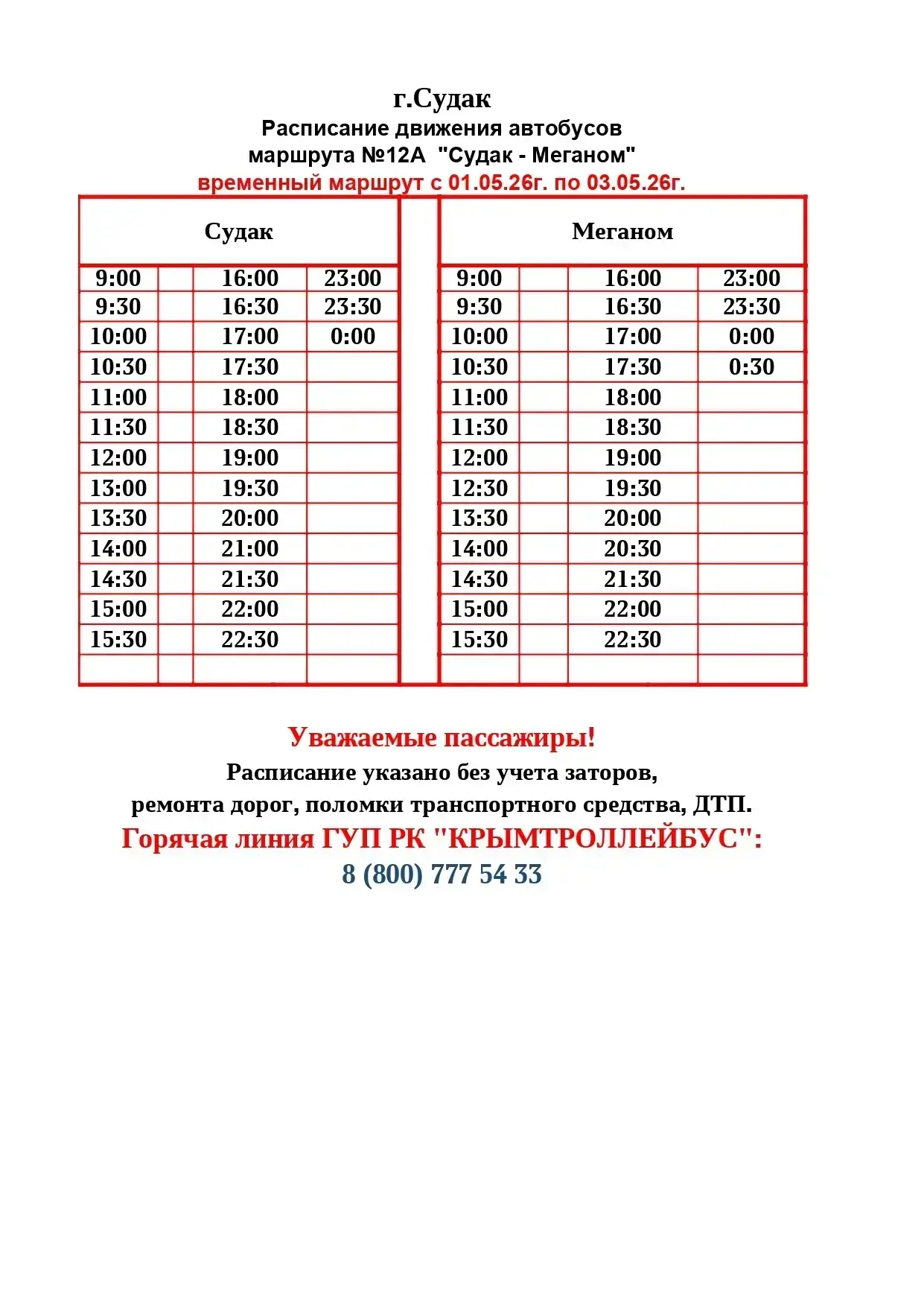По договорённости с Министерством транспорта Республики Крым, перевозчиком ГУП РК «Крымтроллейбус» и организаторами события рассмотрена возможность запуска временного маршрута № 12А от автовокзала г. Судака до мыса Меганом. Дополнительный транспорт позволит справиться с увеличенным потоком пассажиров.