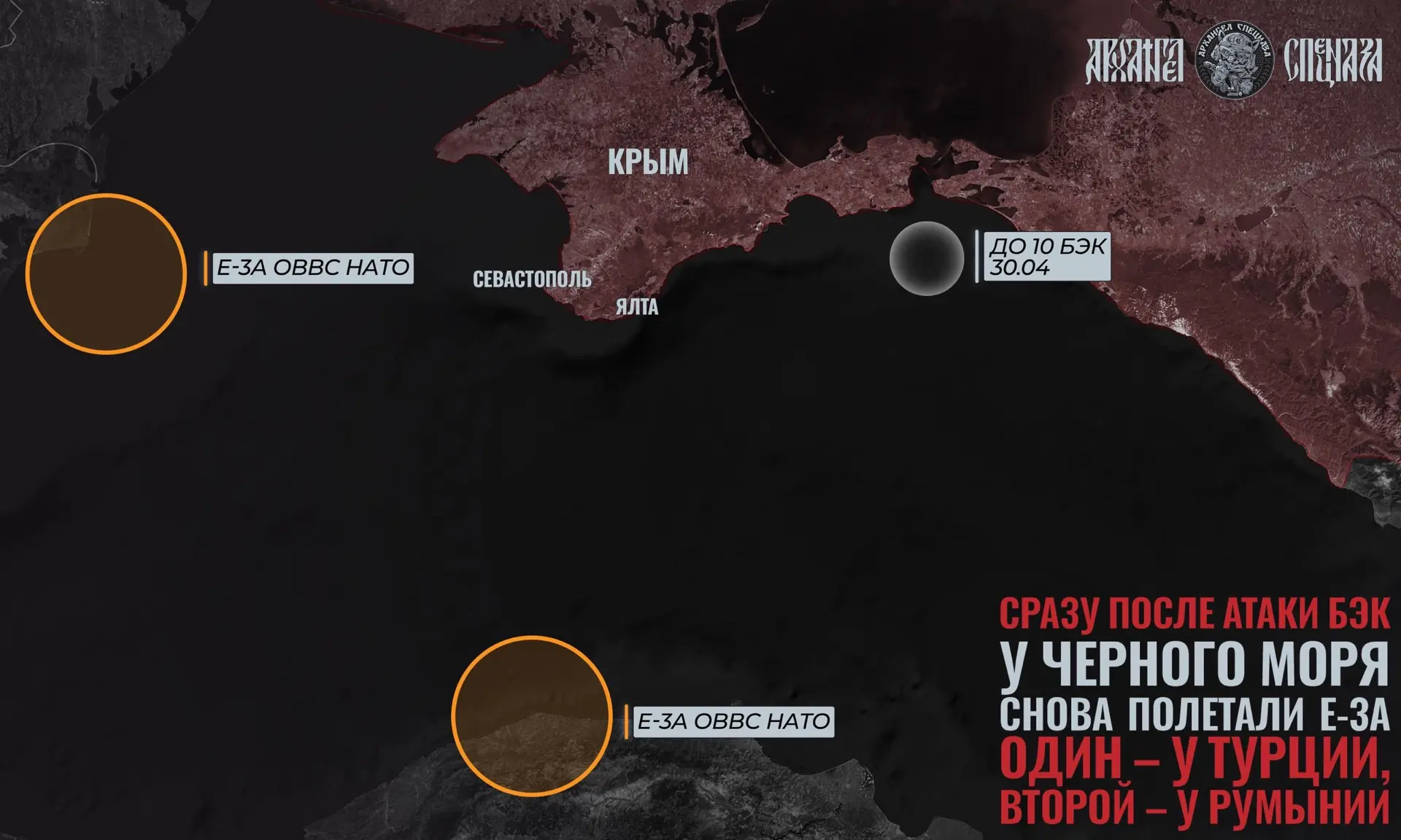 Один Е-3А отработал над севером Турции на направлении Черного моря, а второй у побережья Румынии на западе Черного моря.