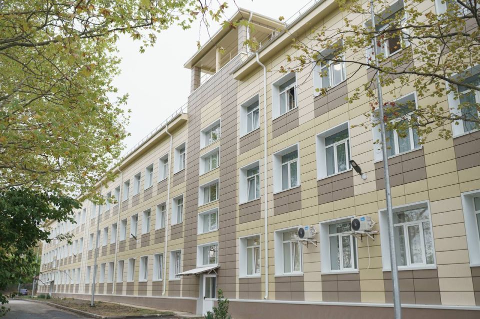 Здесь мы отремонтировали основное здание и здание мастерских, оснастили кабинеты, спортзал, пищеблок, закупили компьютеры и интерактивное оборудование.