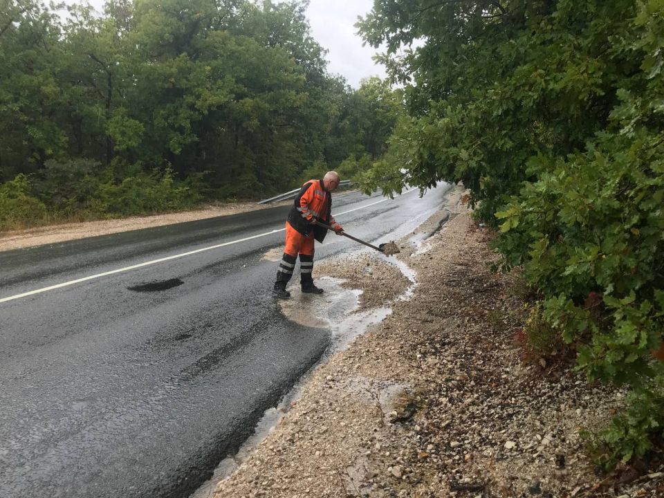 Сотрудники «Севавтодора» убрали наносы гравия на 64-м километре дороги «Севастополь — Ялта», расчистили от листвы ливнесток на 60-м км трассы «Симферополь – Бахчисарай – Севастополь», убрали упавшее дерево на Очаковцев, 4.