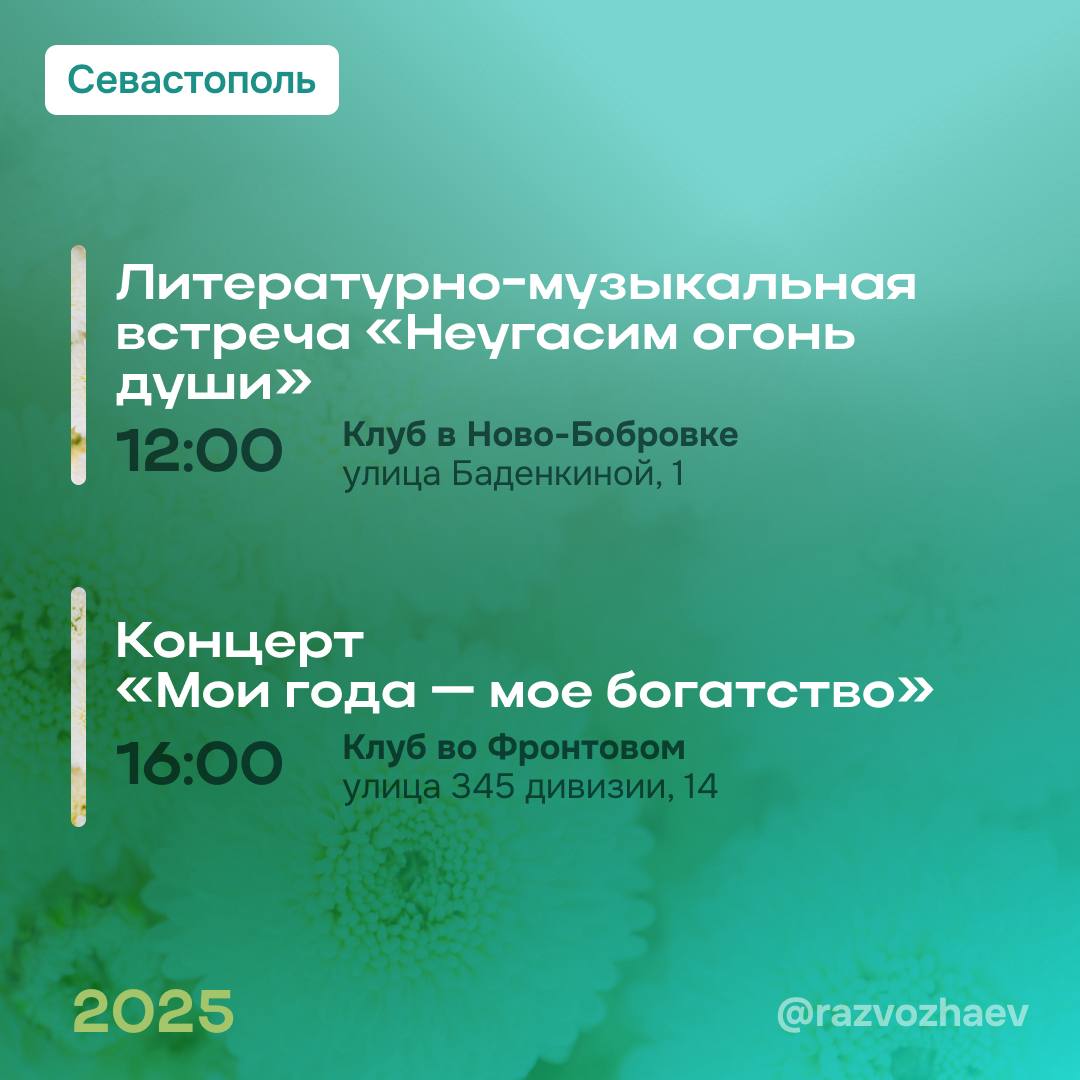 Сегодня севастопольские учреждения культуры подготовили для вас разнообразную праздничную программу: концерты, выступления творческих коллективов, литературно – музыкальные встречи.