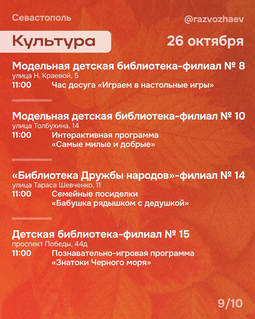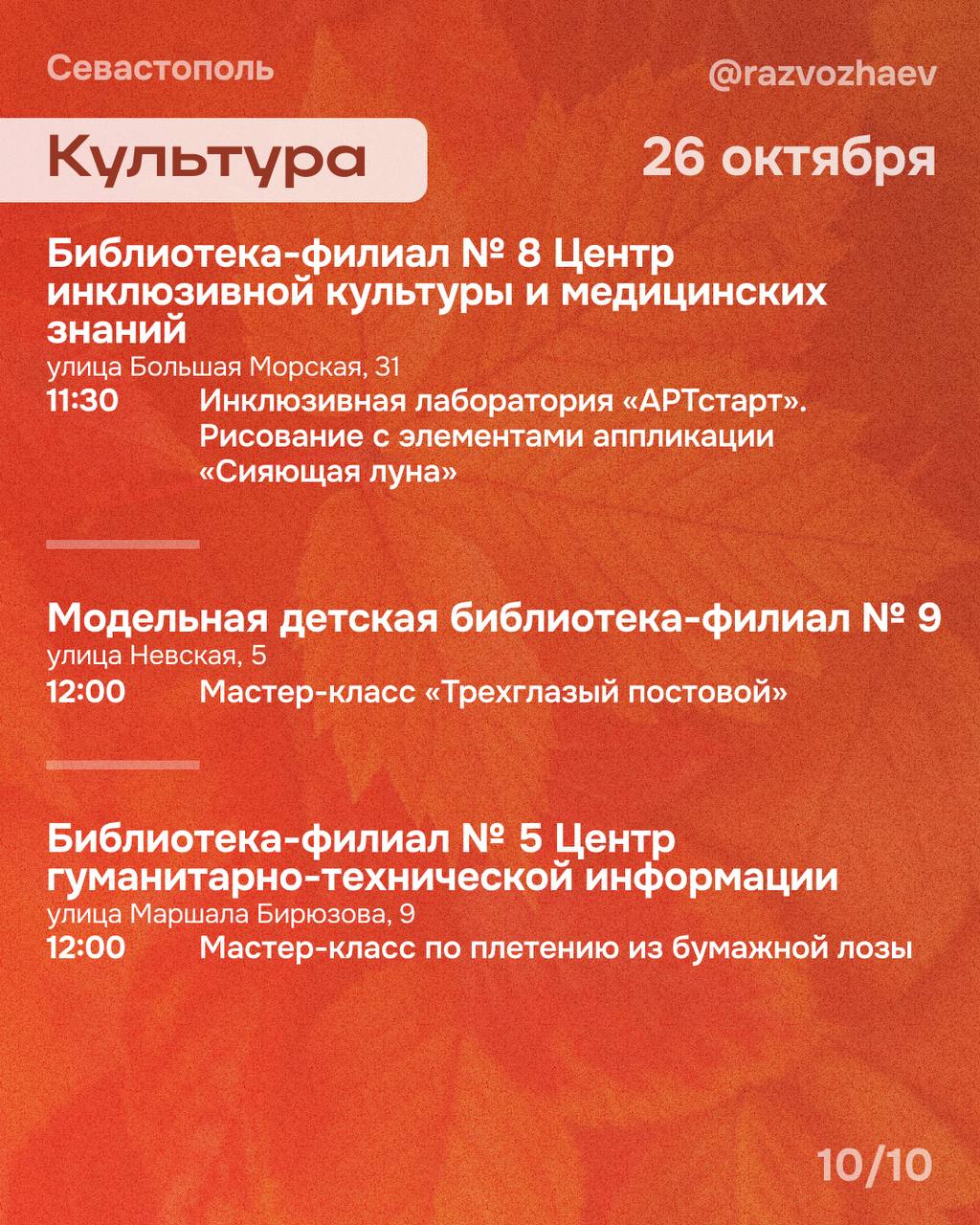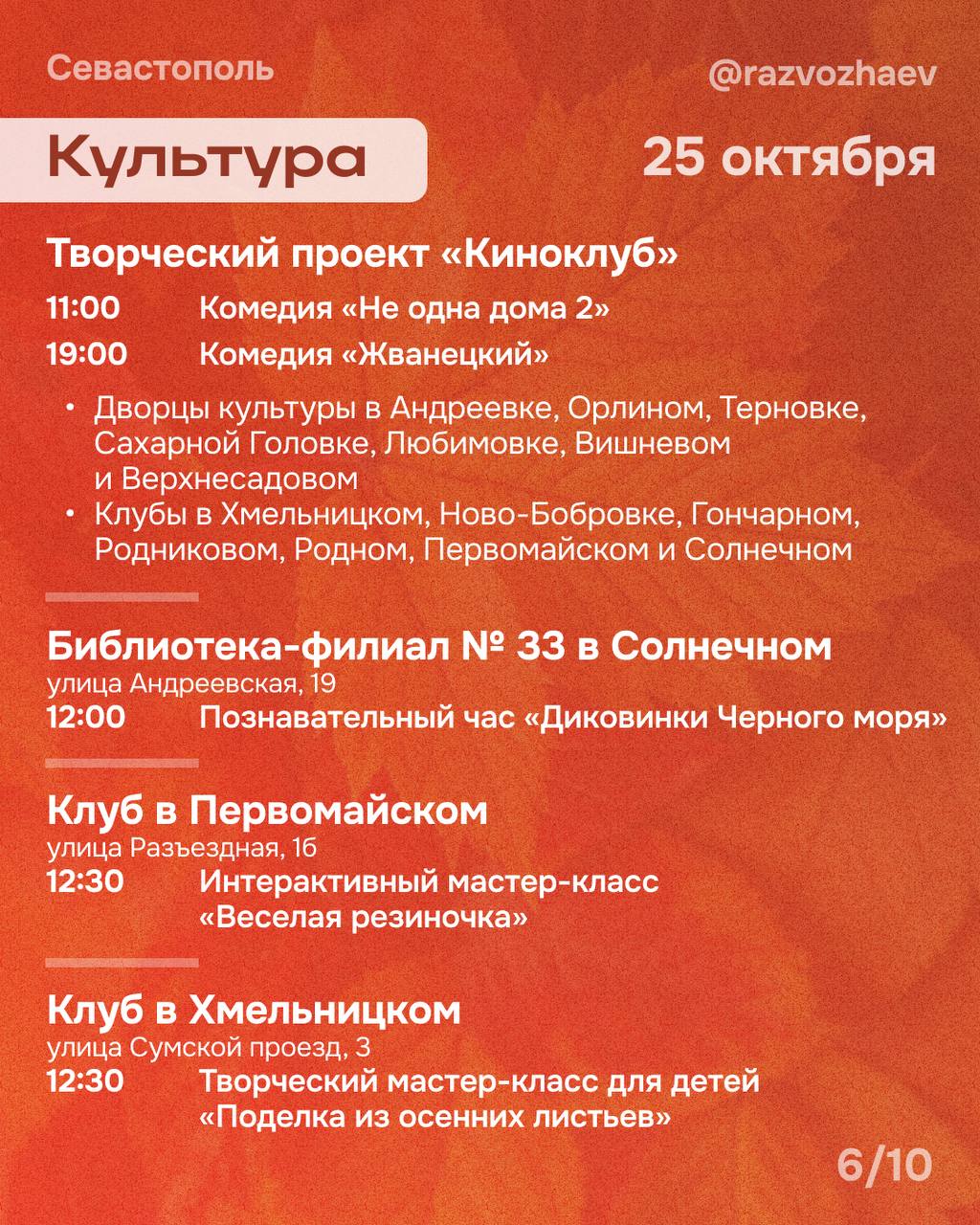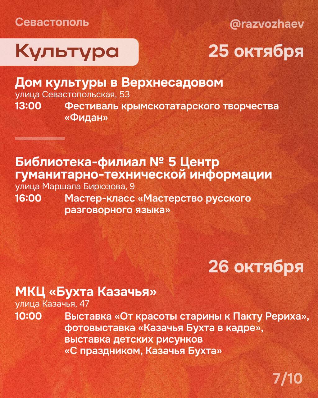 Полное расписание мероприятий на эти выходные вы найдёте на карточках, прикреплённых к этому посту. Выбирайте мероприятия и приходите!