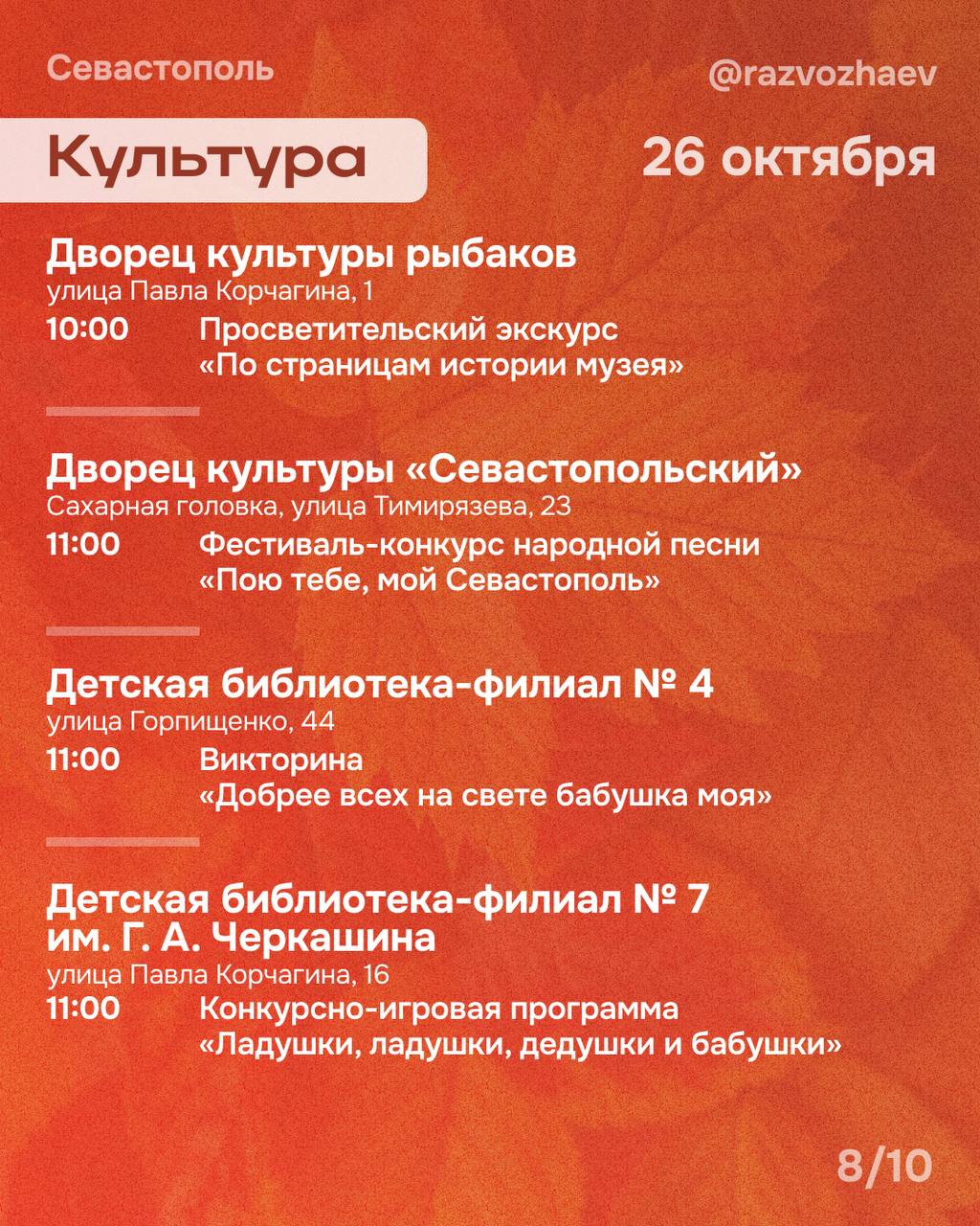 Впереди выходные, и уже традиционно севастопольские учреждения приготовили множество бесплатных мероприятий.