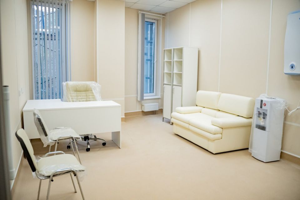 здесь 128 оборудованных кабинетов: для врачей, диагностических зон и персонала.