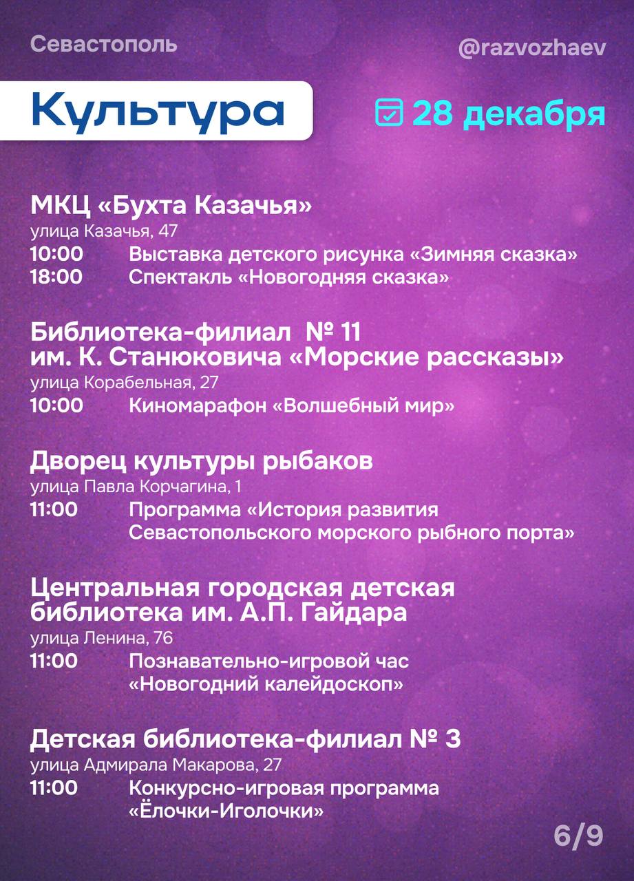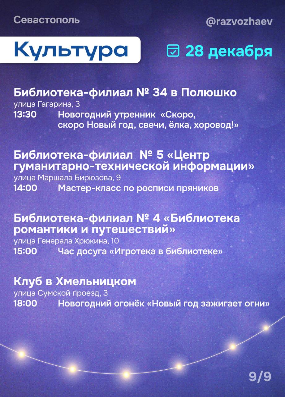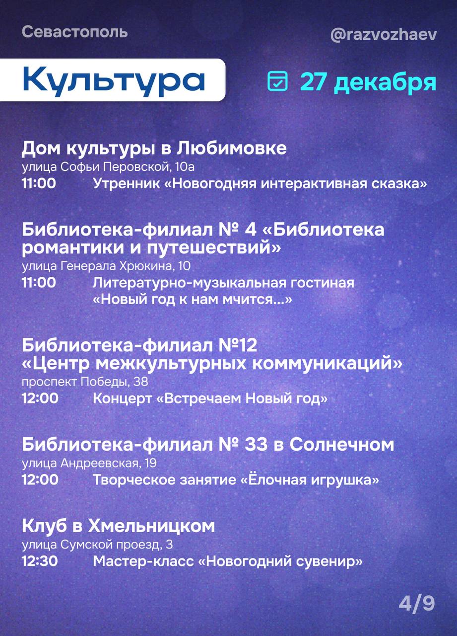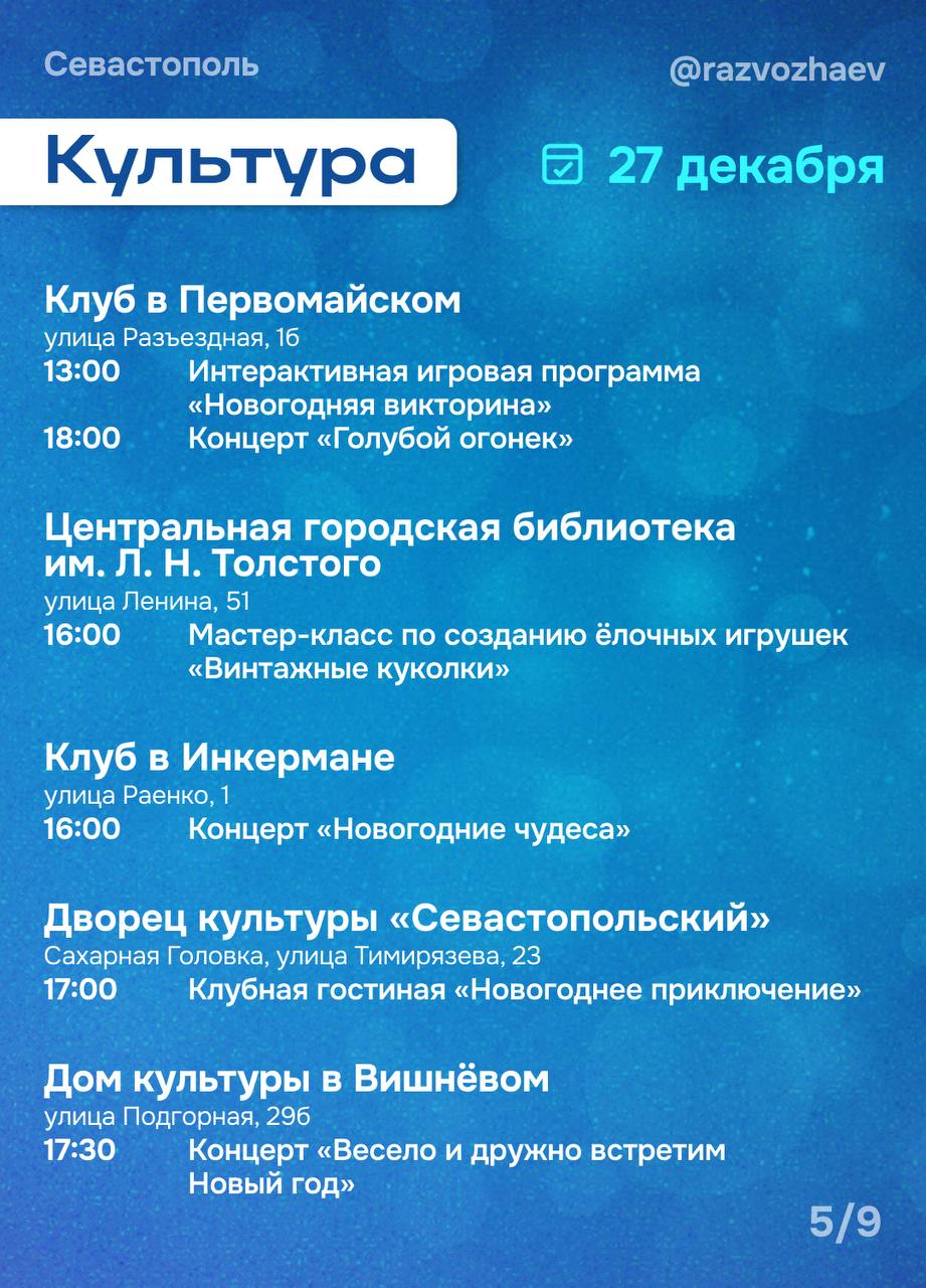 Впереди последние выходные уходящего года, и уже традиционно севастопольские учреждения приготовили множество бесплатных мероприятий.