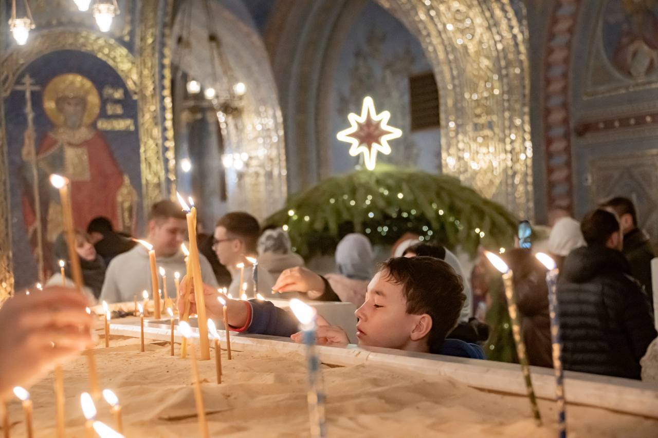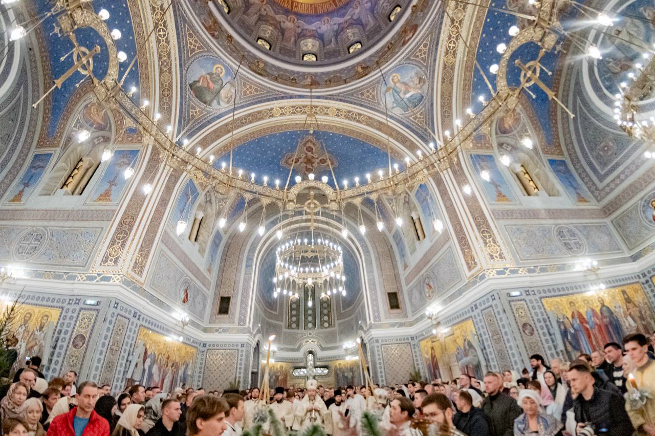 Празднование Рождества продолжилось сегодня. В 10:00 началась поздняя Божественная литургия в верхнем храме Свято-Владимирского собора. А с 12:00 до 13:00 гостей ждет рождественский концерт.