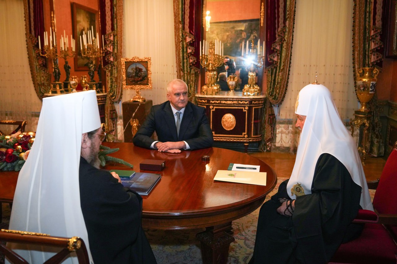 На встрече с Патриархом Московским и всея Руси Кириллом, в которой также участвовал Глава Крымской митрополии Высокопреосвященнейший митрополит Симферопольский и Крымский Тихон, обсудили ряд важных вопросов, в том числе реализацию культурно-просветительских проектов и инициатив.