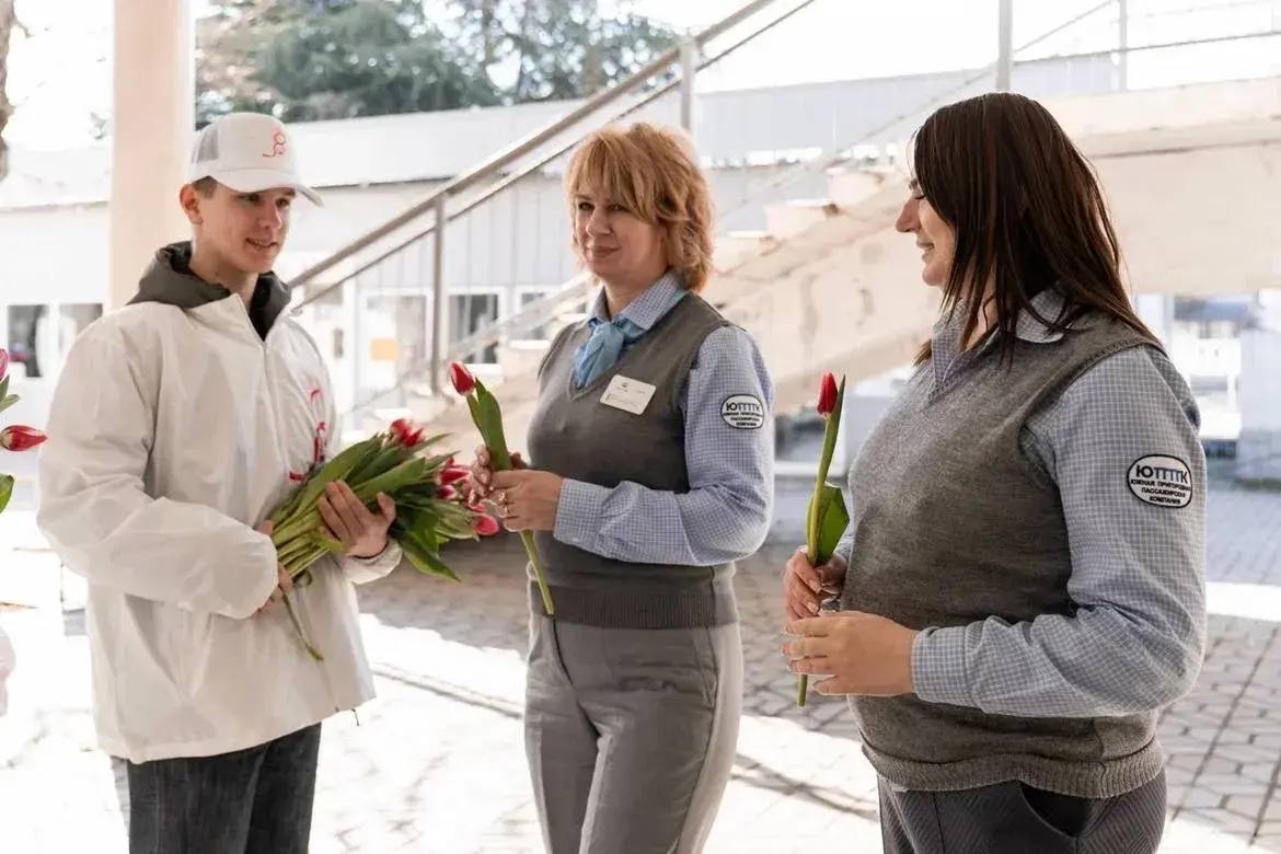 Ребята побывали в Центре крови, родильном доме, поздравили ветеранов Великой Отечественной войны и членов семей участников СВО, подарили цветы девушкам на вокзале и на площади Нахимова.