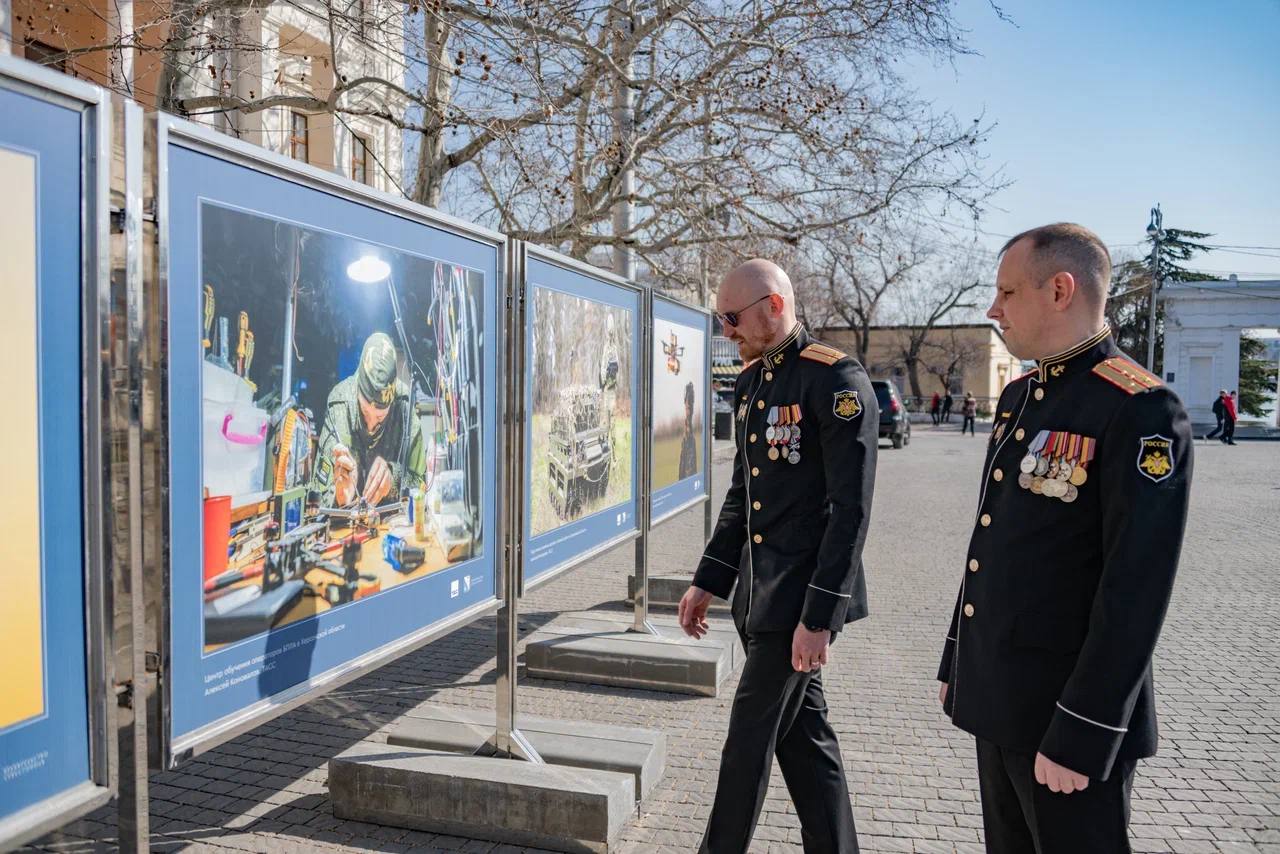 На открытии выставки побывали участники СВО и программы «Севастополь — город героев». Они делились фронтовыми историями — о том, как вовремя подоспевший беспилотник помог выполнить задачу и сохранить жизнь бойцам.
