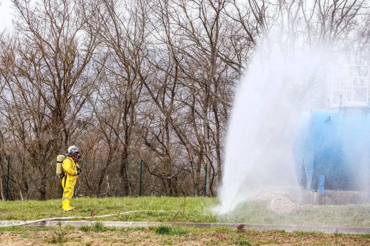 Наши спасатели отрабатывали один из самых опасных сценариев — утечку ядовитых веществ.