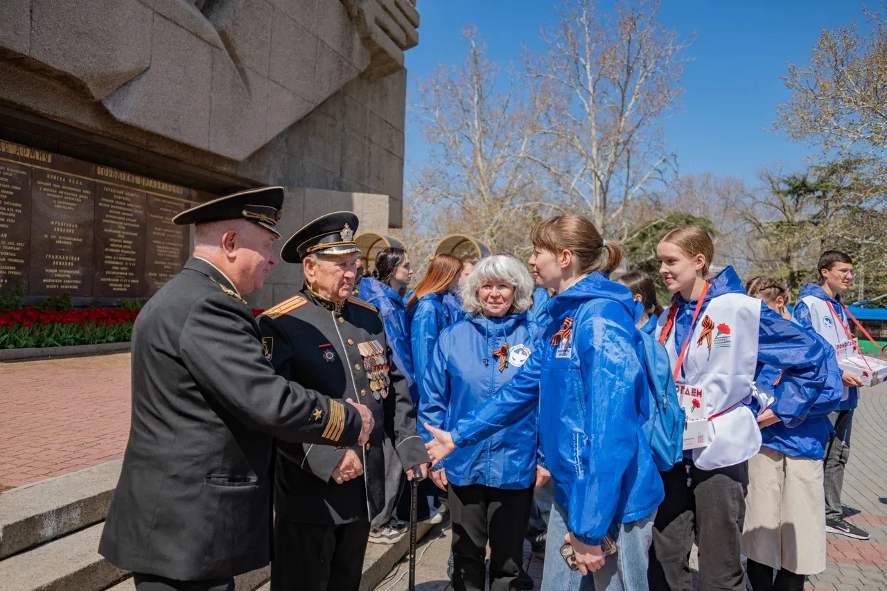 Сегодняшняя акция началась у Мемориала героической обороны Севастополя 1941-1942 гг. На мероприятие пришли наши дорогие ветераны, а первые ленточки всем желающим раздали ребята из «Волонтеров Победы».