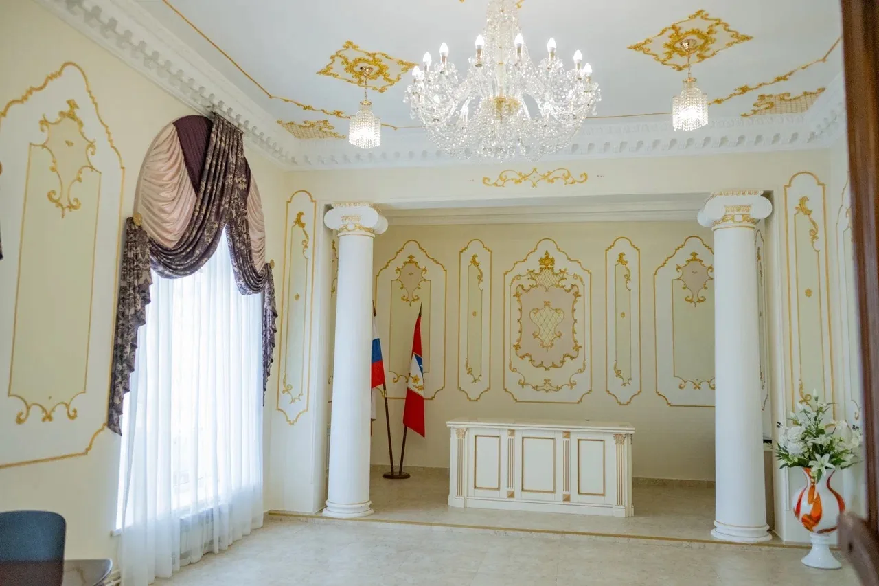 Сегодня в обновлённом зале Ленинского ЗАГСа прошла торжественная церемония регистрации рождения. Юбилейную медаль получил папа маленькой Алисы Шумковой. Василий