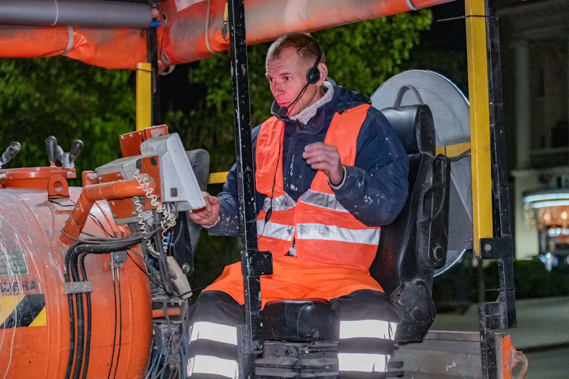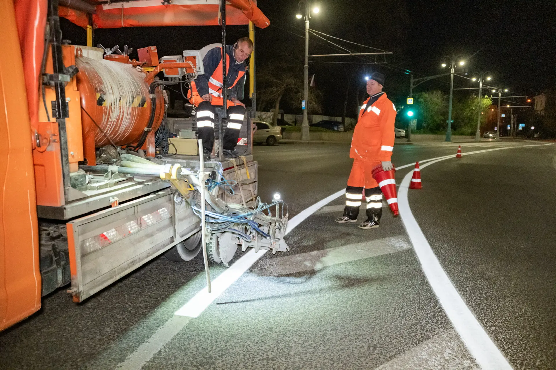 Чтобы не создавать пробки и не мешать движению транспорта, дорожники работают преимущественно в ночное время.
