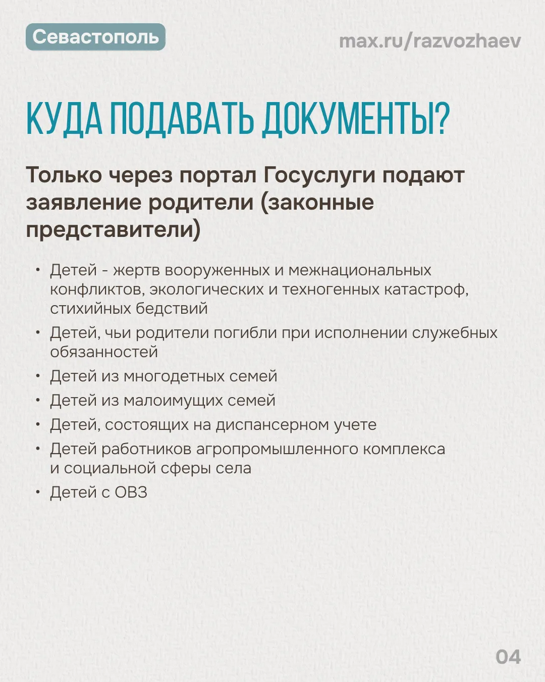 Напомню, путевки за счет средств регионального бюджета получают ребята льготных категорий. Все категории перечислены в информационных карточках. Мы планируем оздоровить 8 745 детей.
