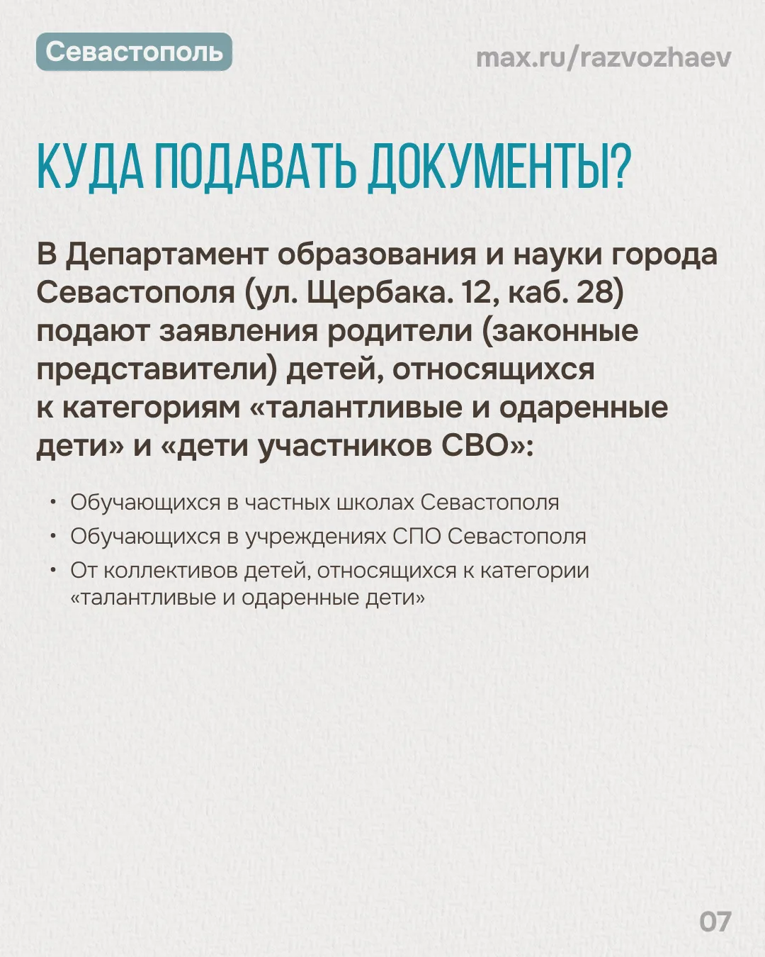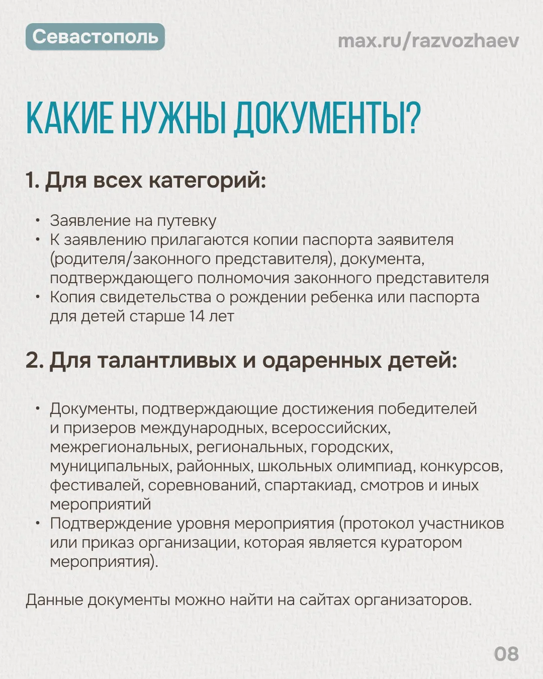 Подробную информацию о летней оздоровительной кампании читайте на карточках, прикреплённых к этому посту, и на сайте Департамента образования и науки города Севастополя.