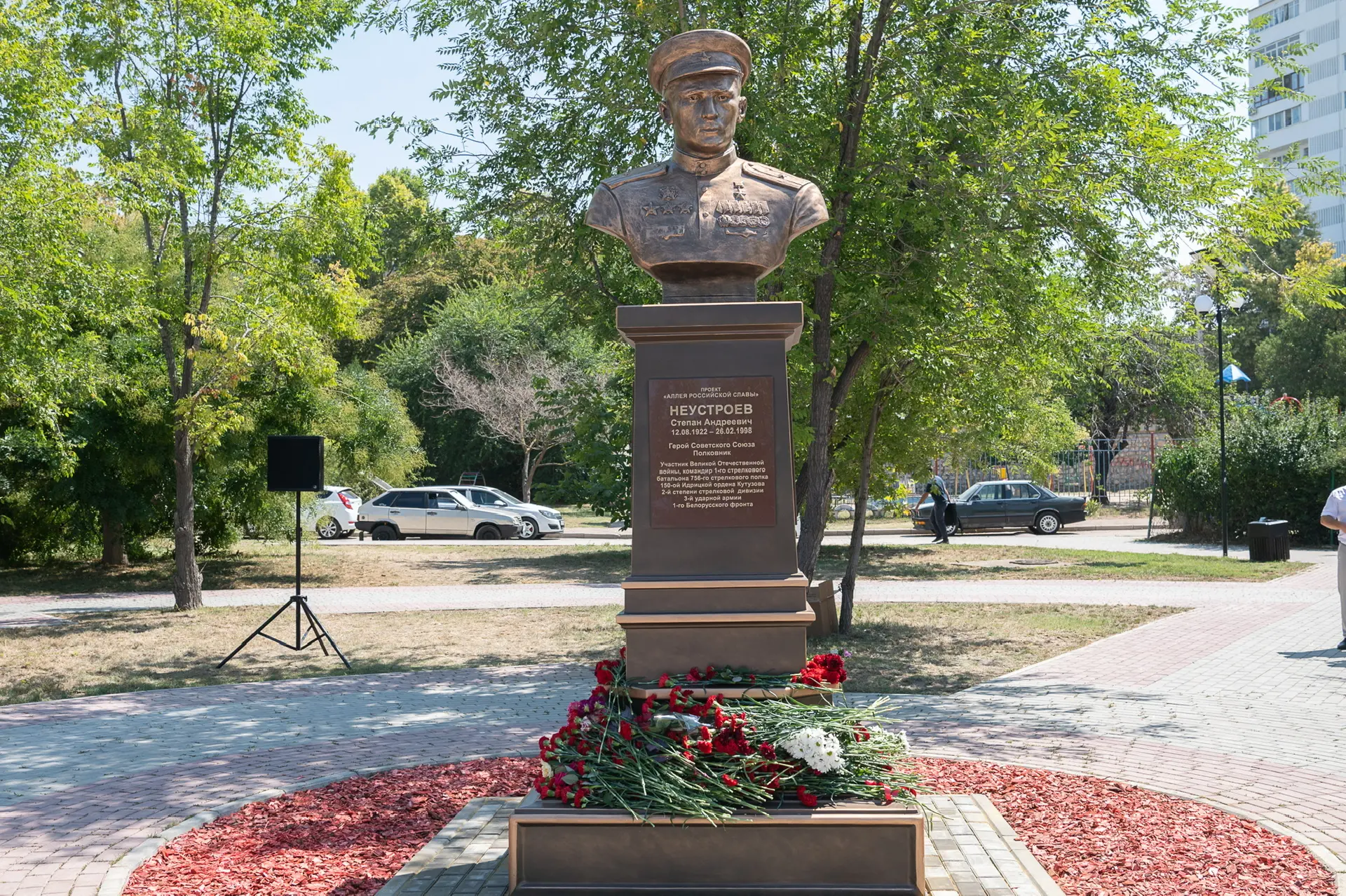 С 1980 года Степан Андреевич Неустроев жил с семьей в Севастополе. Он покоится на Аллее Героев городского кладбища «Кальфа». Его именем названа школа № 37, площадь в Гагаринском районе города и сквер, где в 2022 году мы открыли бюст герою.