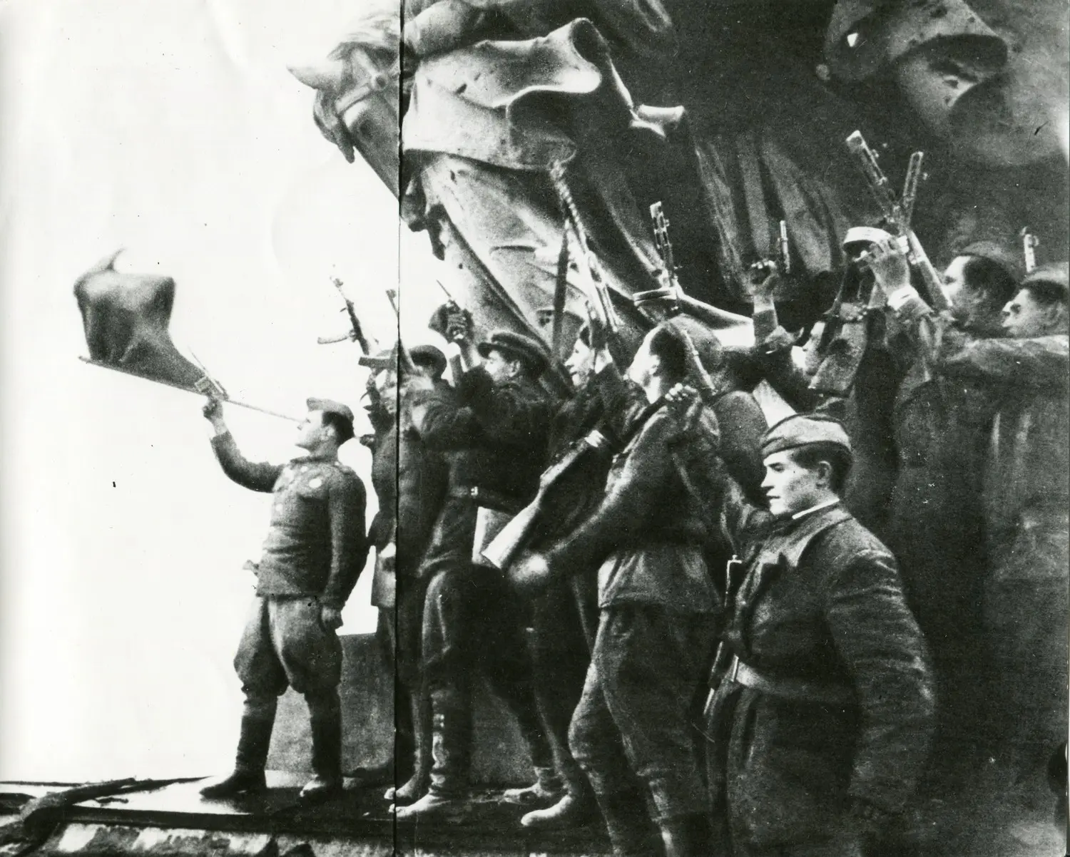 Известно, что во время штурма Рейхстага было несколько попыток водружения флага в одно и то же время, однако немцам удавалось сбить знамёна артиллерийским огнем. Осталось невредимым лишь знамя, водружённое лейтенантом Алексеем Берестом, сержантом Михаилом Егоровым и младшим сержантом Мелитоном Кантарией.