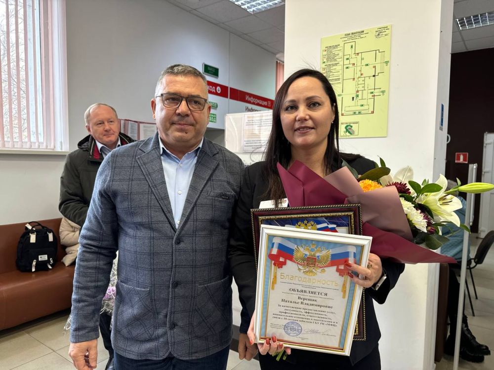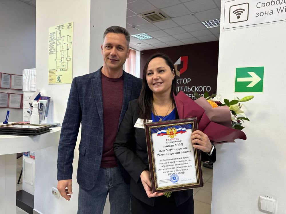 В этом году коллектив ГБУ РК «Многофункциональный центр предоставления государственных и муниципальных услуг» отмечает 10-летие со Дня создания. Сегодня поздравил коллектив Черноморского МФЦ с предстоящим праздником.