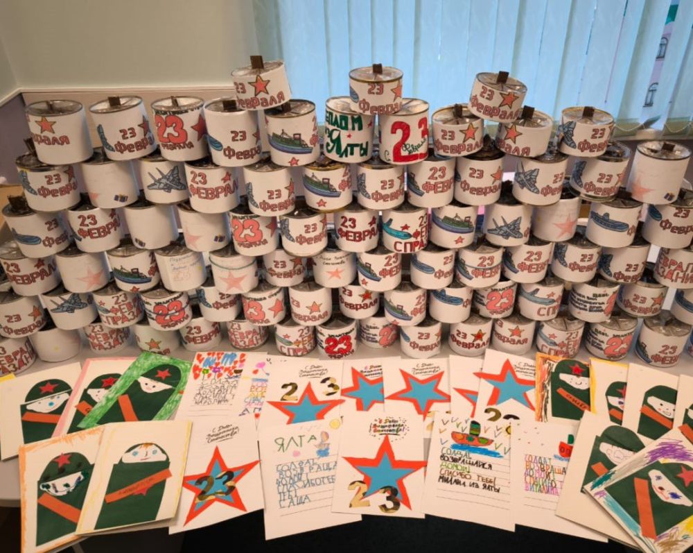 Дети, родители и воспитатели детского сада №67 «Солнечный дом» продолжают помогать нашим военным на передовой. Ко Дню защитника Отечества дошкольное учебное заведение подготовило очередную партию гуманитарной помощи. Это блиндажные свечи, сладости, теплые вещи и, конечно же, поздравительные письма и открытки от малышей.