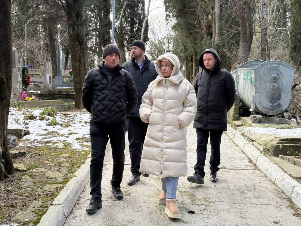 Новое кладбище. Много вопросов к сансостоянию. Рекомендовала начальнику Департамента ЖКХ объявить взыскания и.о. директора МБУ «Ритуал» и заведующему кладбища. Моему заместителю Юрию Журавлеву поручила разработать проект благоустройства территории захоронения наших воинов. Необходимо предусмотреть укрепление склонов, организовать пешеходные дорожки. Кроме того, определить правила содержания могил и получения бесплатного разрешения на проведение земляных работ и работ по благоустройству захоронений (для организации порядка контроля). В процессе обустройство большого зала для прощания и отпевания – в нем есть потребность, об этом просили ялтинцы неоднократно.