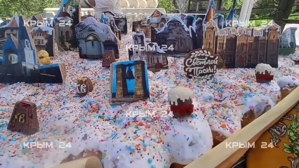 «Мы испекли кулич 2,5 метра в окружности — самый большой и непростой. Он украшен достопримечательностями Крыма, поэтому ему дали название “Крым в миниатюре”», — отметил Жиленко.