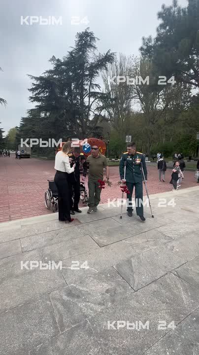 Герои России Владимир Манохин и Олег Пивоваров возложили цветы к Вечному огню в Симферополе