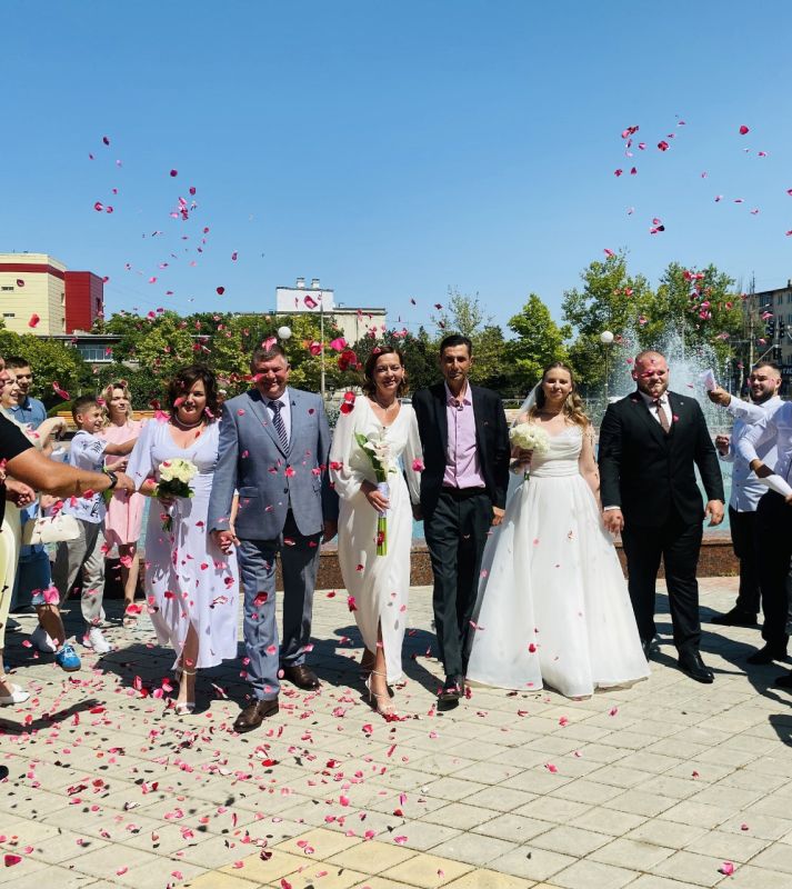 Сотрудники отдела ЗАГС поздравили новобрачных с днем бракосочетания и пожелали, чтобы семейная жизнь была наполнена любовью, взаимопониманием и поддержкой, а жизненный путь был таким же легким и ярким, как лепестки роз, кружащиеся в воздухе в день открытия свадебного сезона 2025.