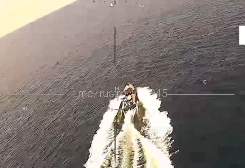 Поражение очередного украинского БЭК-носителя FPV-дронов ударом нового дрона "Клин" в Черном море.