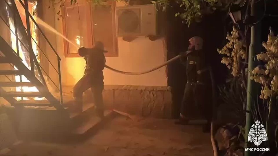 Ночью в Судаке горел дом.. Пожарные прибыли на место и выяснили, что полыхает кровля одноэтажки