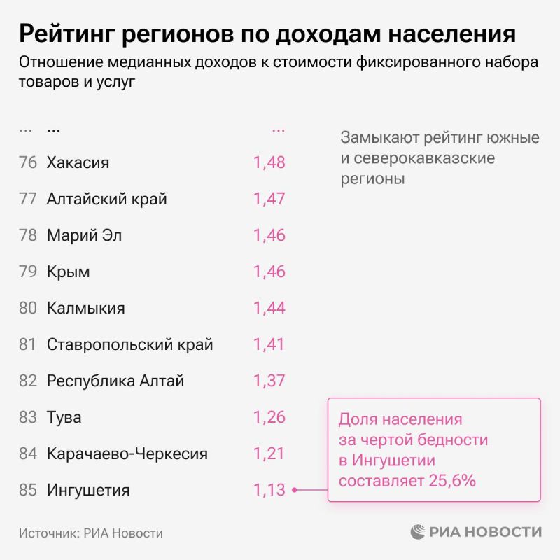 В замыкающей группе - Ингушетия, Карачаево-Черкесия и Тува.