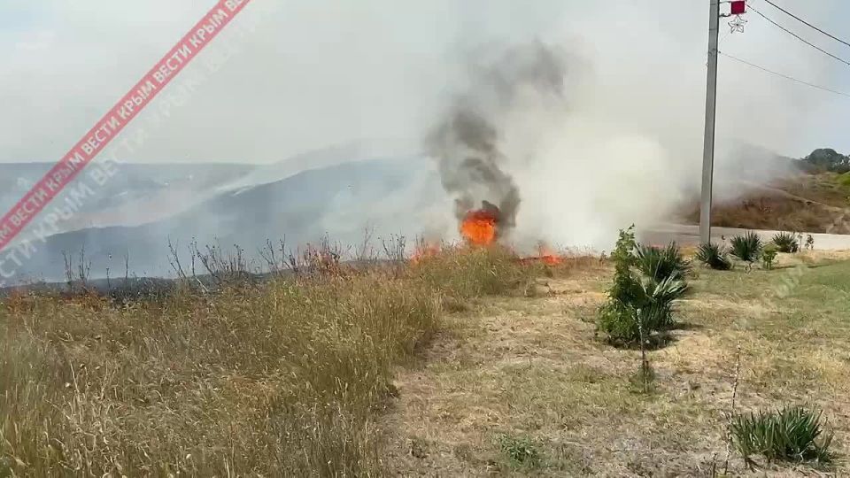 Огонь подбирается к жилым домам, передаёт корреспондент Вести Крым.