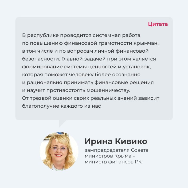 Проверьте, в каких ситуациях вы сможете распознать мошенников, а в каких есть риск стать их жертвой. Для этого достаточно пройти тест на финансово-цифровую безопасность для всей семьи. Тематический опрос проходит в рамках пятого этапа всероссийской просветительской эстафеты «Мои финансы».