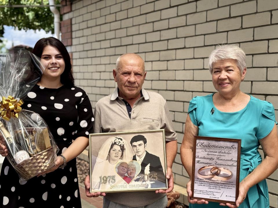 От Красногвардейского районного отдела ЗАГС супругам вручили Свидетельство о достижении знаменательного юбилея «Золотая свадьба», а также памятную фотографию «50 лет счастья», символизирующую настоящие чувства, проверенные временем.
