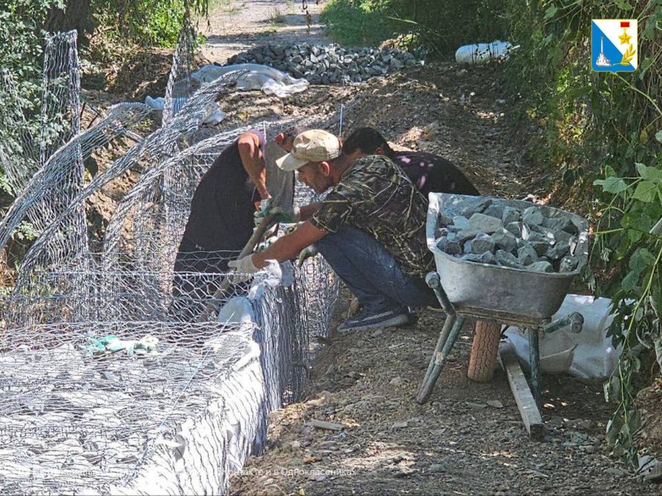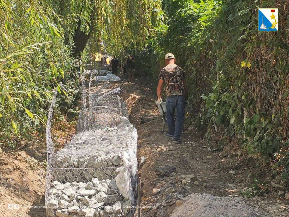 Сейчас укладывают габионы в переулке между улицами Переселенческая и Евгения Макарова. Габионы защитят покрытие, но не помешают водотоку во время дождей.