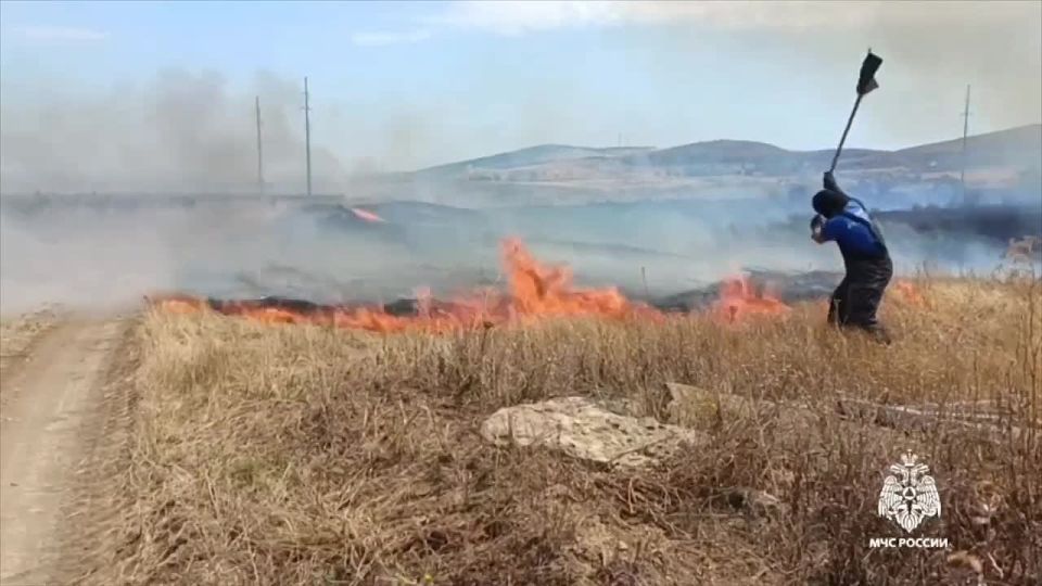 Горела сухая растительность. Тушение пожара заняло более пяти часов.