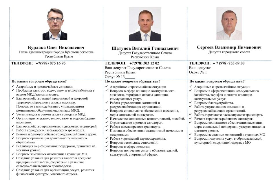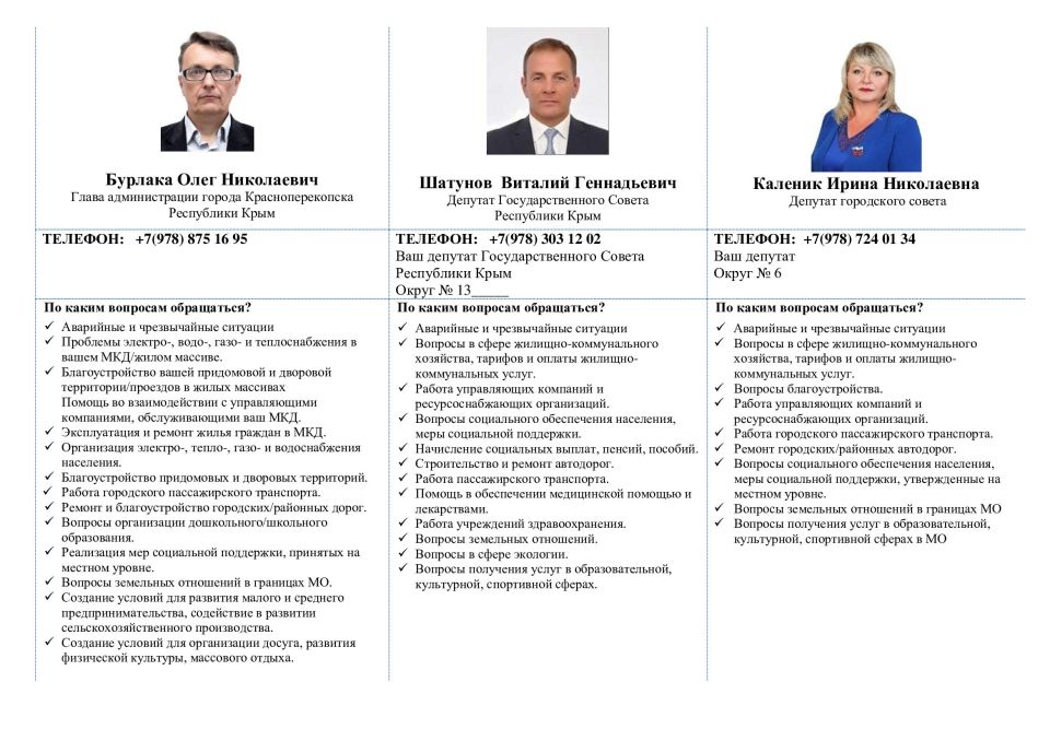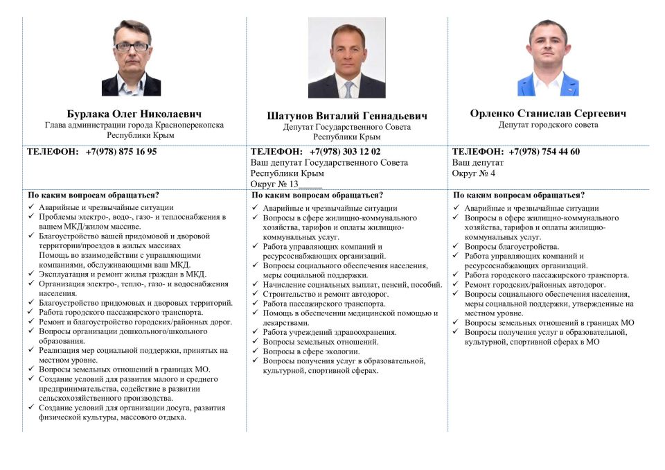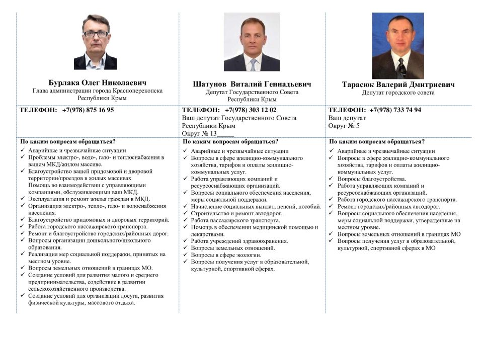 Информационные листовки с контактами руководства и депутатского корпуса города Красноперекопска