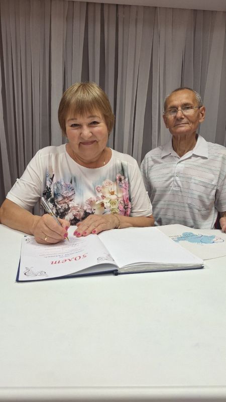 Торжество этой пары прошло в очень тёплой и дружеской атмосфере. Владимир Степанович и Мария Васильевна, как и много лет назад обменялись кольцами, поставили подписи в почетной книге юбиляров, а также поделились своим секретом семейного счастья.