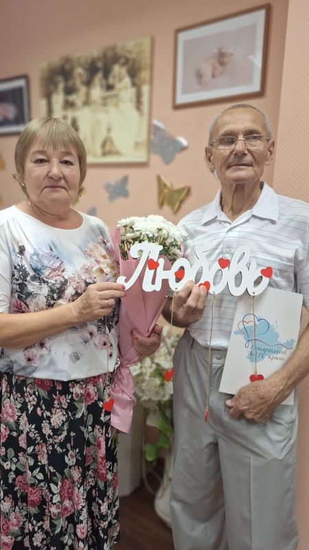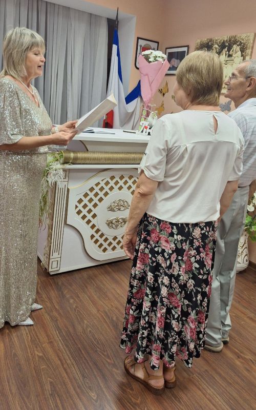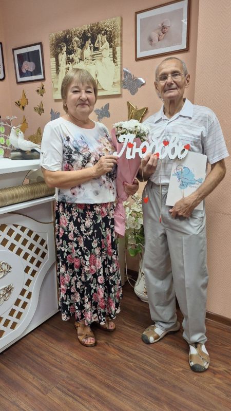 Юбилярам вручили поздравительный адрес от Департамента ЗАГС, цветы и подарки. Этот трогательный момент стал ярким свидетельством признания их заслуг и любви.