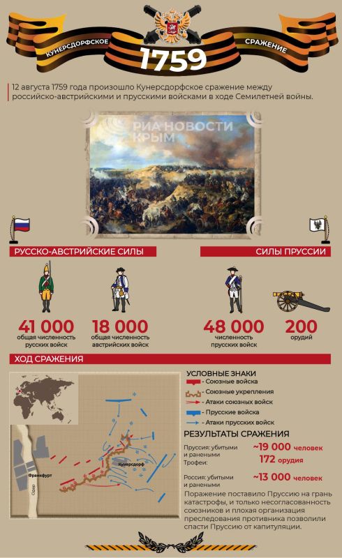 12 августа 1759 года русские войска разгромили "непобедимую" прусскую армию Фридриха II.