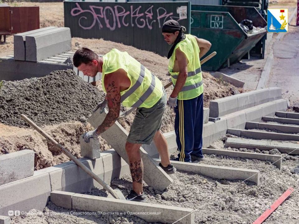 Уже поставили бордюры, начали восстанавливать лестницы и готовят площадку для нового асфальта – половина работ сделано.