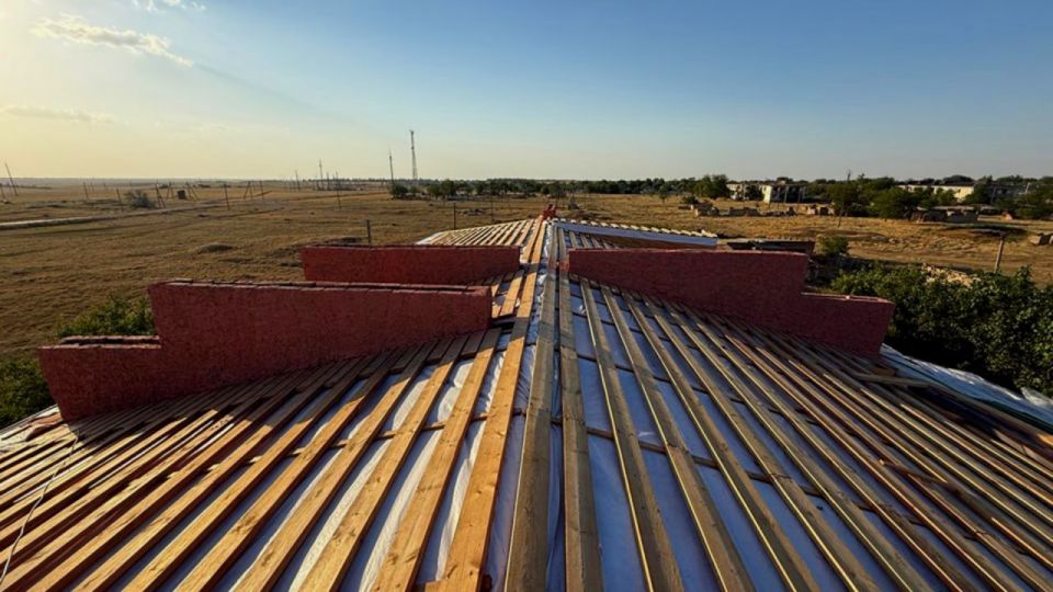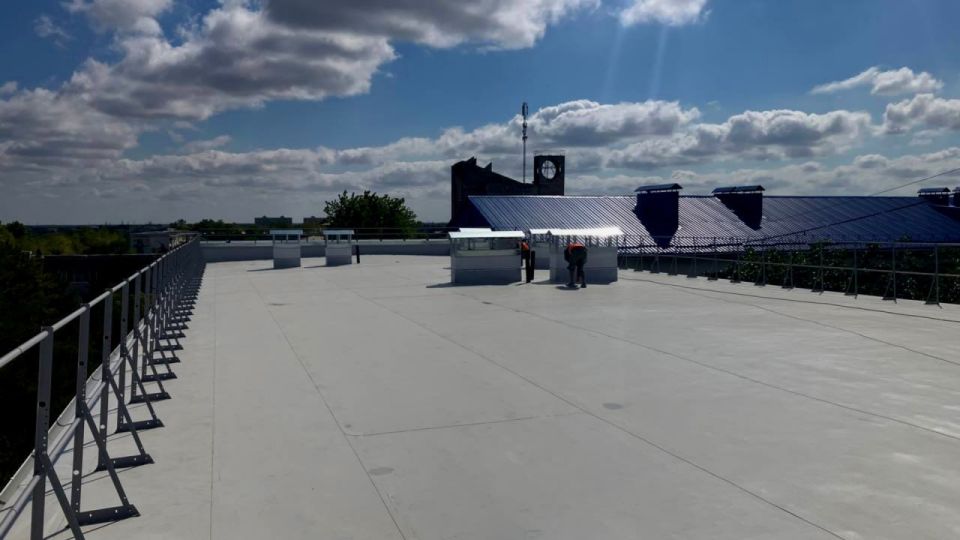 В зависимости от вида кровли, строителями меняется стропильная система кровли (либо производится ремонт стропильных ног) и кровельное покрытие, производится устройство водосточной системы, ремонт конструкций помещения выхода на кровлю и ремонт вентшахт (при их наличии), а также устанавливается защитное металлическое ограждение по периметру крыши.