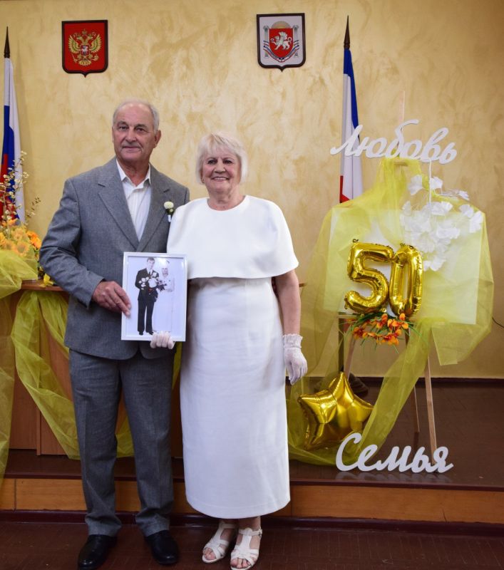 В Раздольненском районном отделе ЗАГС провели торжественную церемонию чествования супружеской пары Юрия Петровича и Анны Дмитриевны Гарькавых, проживших вместе 50 лет.