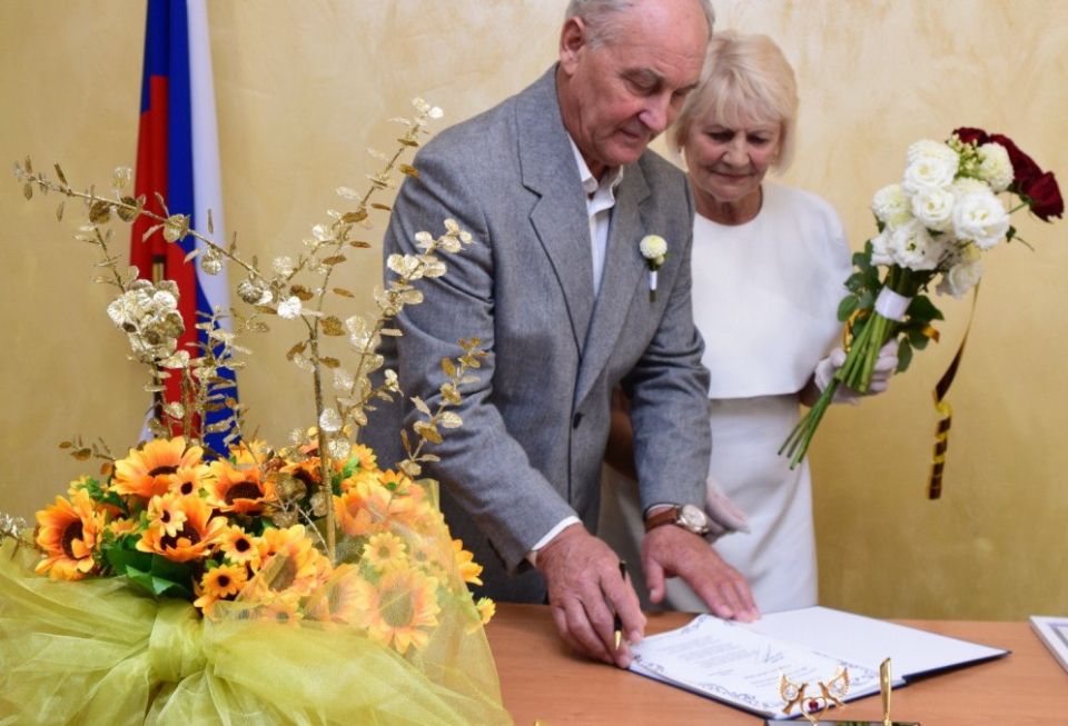 Супруги-юбиляры получили право вновь почувствовать себя молодожёнами и поставить подписи в семейной летописи ЗАГСа. Ручка, лежащая перед ними, стала «мостиком в прошлое». Взяв её в руки, Юрий Петрович и Анна Дмитриевна словно перенеслись на 50 лет назад, в тот день, 13 сентября 1975 года, когда они, юные и влюблённые, впервые поставили свои подписи в книге записи актов гражданского состояния Отдела ЗАГС исполнительного комитета Раздольненского районного совета депутатов трудящихся Крымской области, УССР.