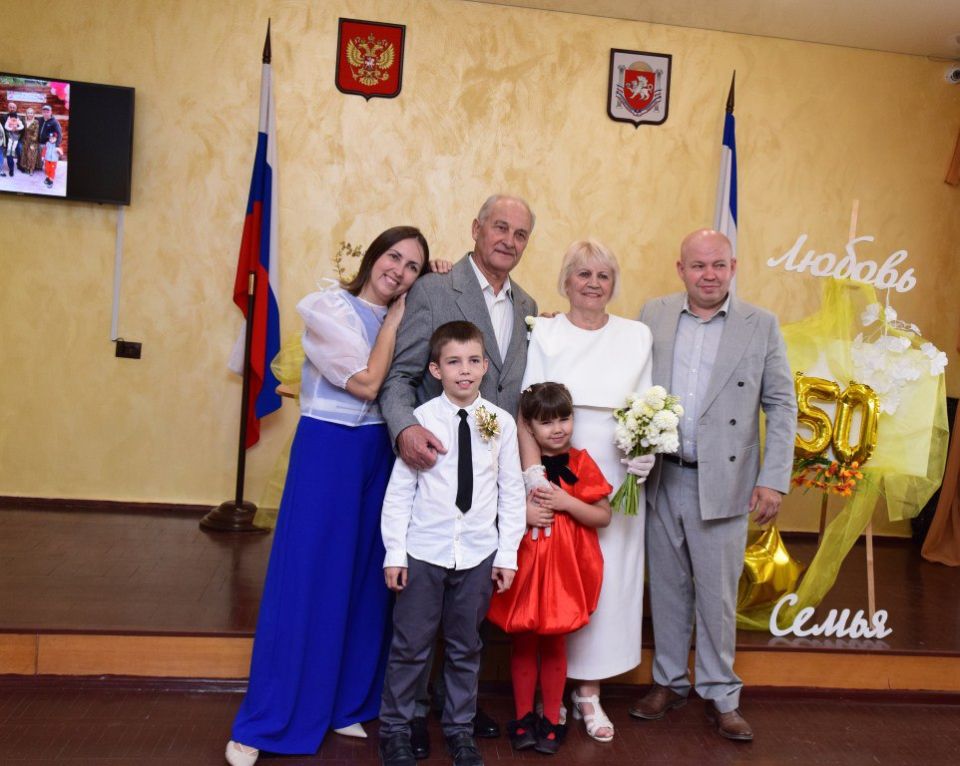 За большой вклад в укрепление и сохранение семейных традиций и ценностей, достойное воспитание детей и в связи с празднованием 50 лет совместной жизни Юрий Петрович и Анна Дмитриевна с гордостью и волнением приняли благодарственное письмо от Раздольненского районного отдела ЗАГС, а также Юбилейный значок Департамента ЗАГС Министерства юстиции Республики Крым.