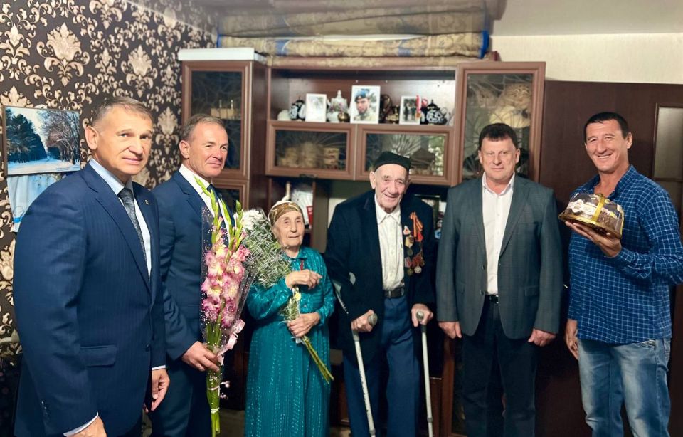 Сегодня, вместе с депутатом Государственного Совета Республики Крым Виталием Шатуновым, главой муниципального образования Игорем Нижником и представителем фонда "Защитники отечества" Республики Крым с огромной радостью и глубоким уважением поздравили удивительную пару — Аблямита и Шашне Бекмамбетовых с их 90-летним юбилеем!