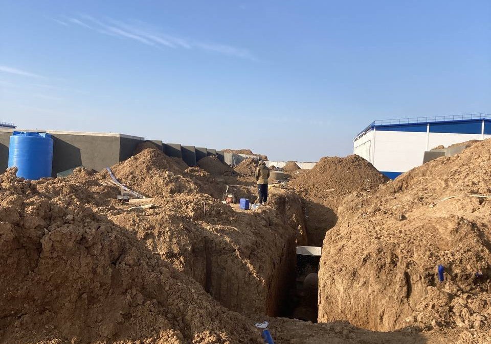 Проектная мощность станции составляет 15 000 м/сутки. Готовность объекта на данный момент – свыше 75%.