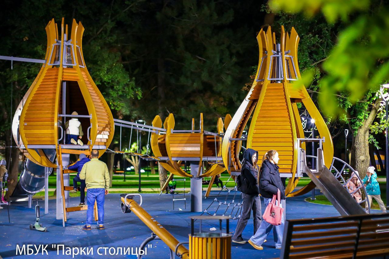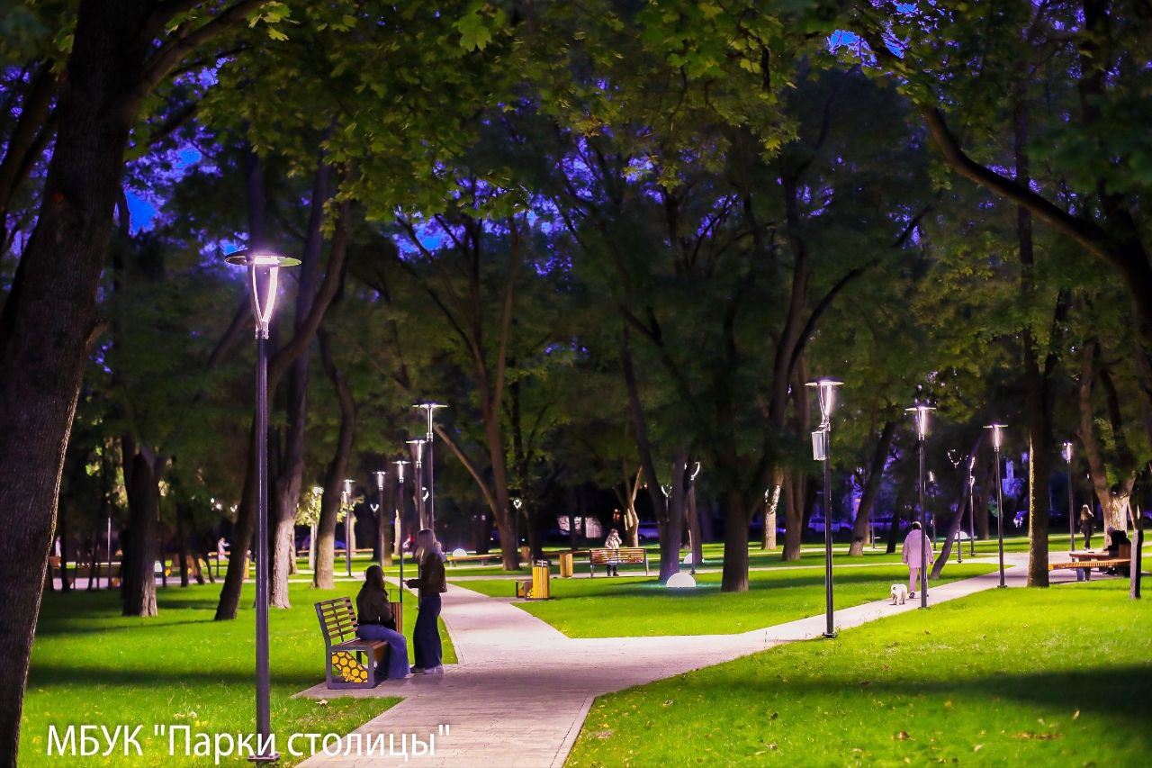Благодаря современному освещению парк становится комфортным местом отдыха в любое время суток. Игровые площадки отлично освещены, а эргономичная беговая дорожка с ночным светом вдоль всего периметра позволяет активно заниматься спортом даже поздно вечером.