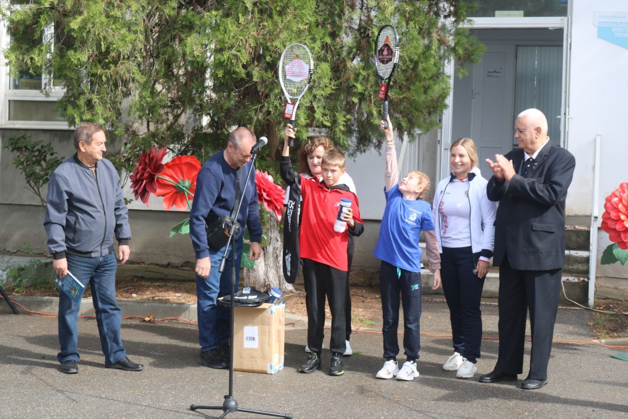 Благодарю министра спорта Республики Крым Ольгу Торубарову за проведение с учащимися школы на новой площадке зарядки с министром спорта, президента региональной спортивной общественной организации «Федерация тенниса Республики Крым» Михаила Щербакова за показательные выступления и мастер класс по большому теннису.