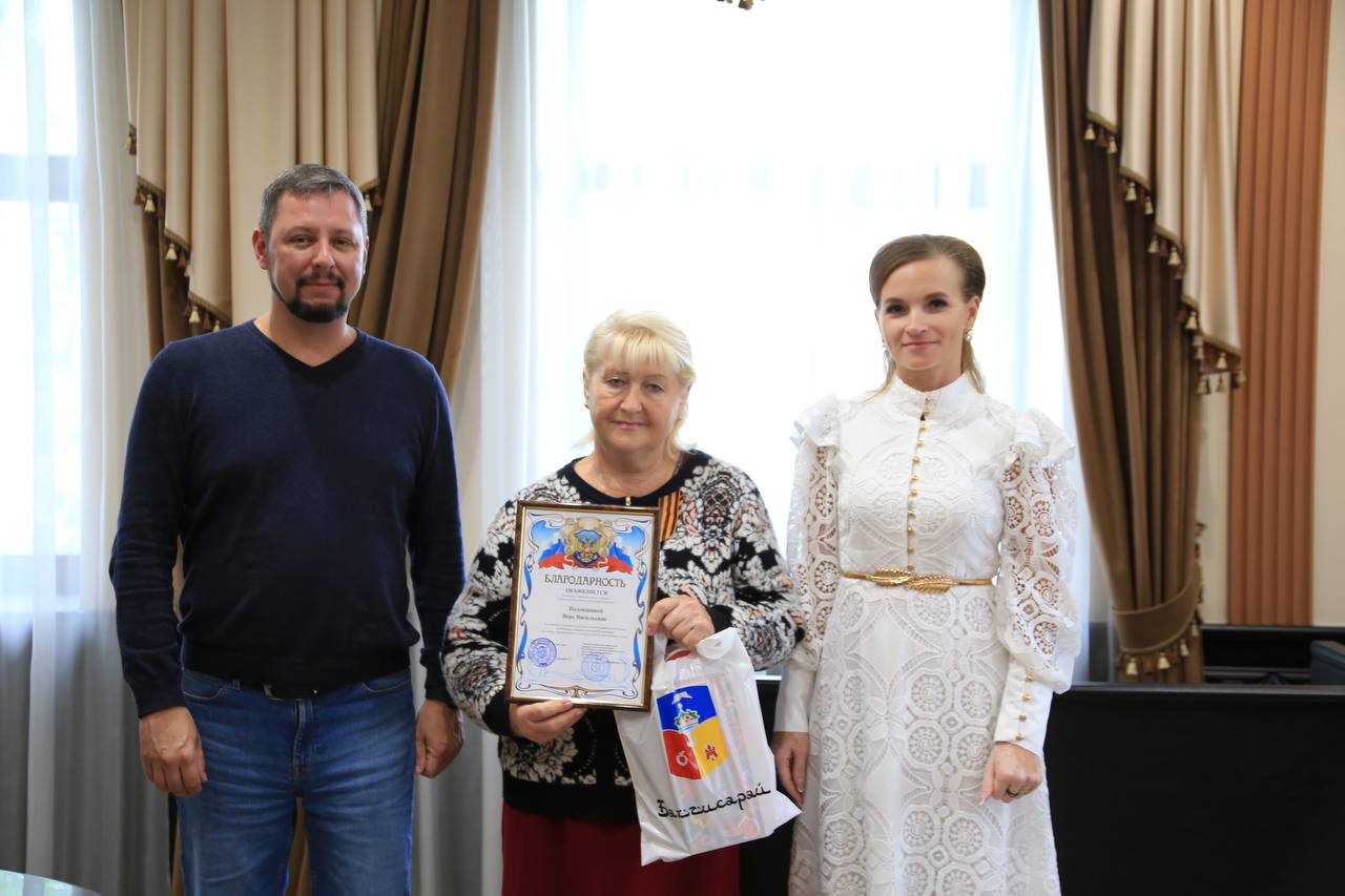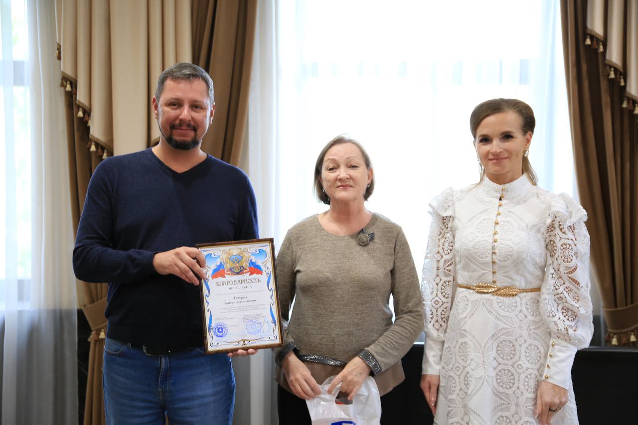 В знак уважения и признательности Дмитрий Сергеевич и Ольга Михайловна вручили благодарности и памятные подарки.